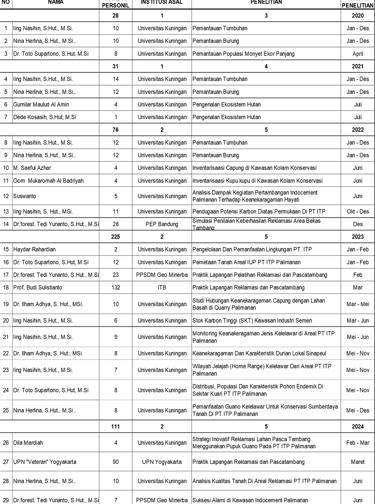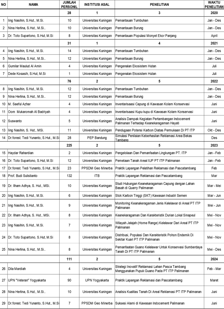 Kawasan ini menjadi pusat penelitian keanekaragaman hayati di area kerja ITP Unit Palimanan yang dilakukan oleh berbagai institusi baik dari internal maupun eksternal perusahaan.
